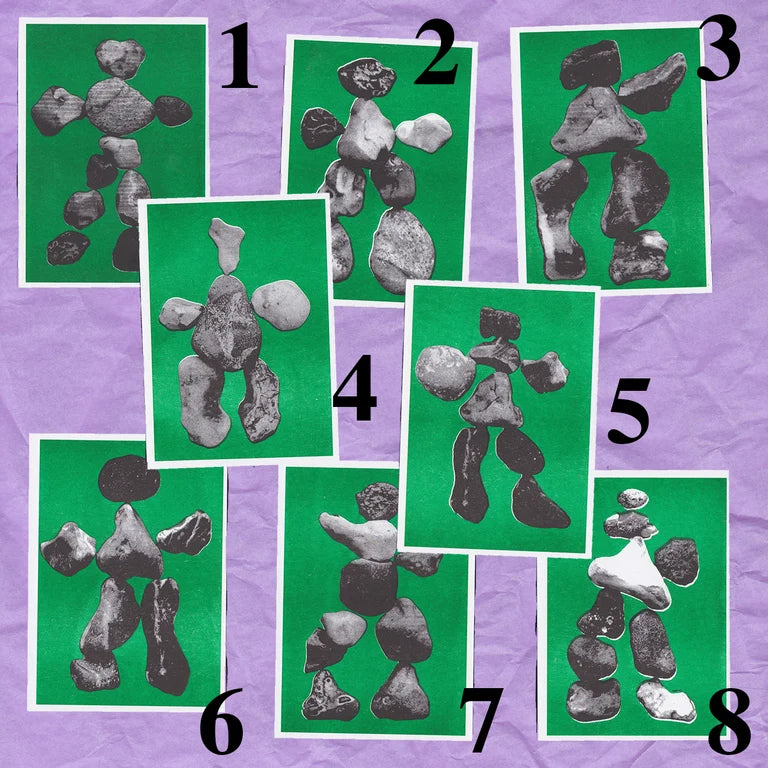 These risograph prints are made using scanned rocks, found on Brighton beach. I then printed these using a risograph duplicator. Risograph printing brings these rocky figures to life with distinct texture that capture the texture of the clay and bright inks that make the print pop. These risograph prints are a blend of vibrant colours and tactile texture that capture the energy of the original objects. The risograph process uses soy-based inks, making it an environmentally friendly choice for producing prints. I find this process Ideal for conveying the texture of the drawing and the clay textures.